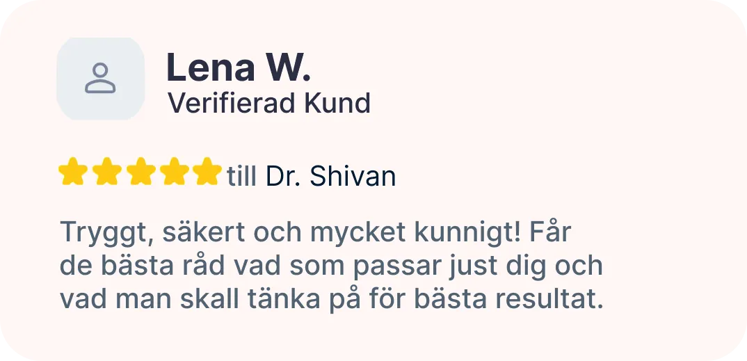 Konsultationen är helt kostnadsfri och förutsättningslös – ett tillfälle för dig att känna efter, ställa frågor och få en ärlig bedömning av vår expertläkare om vilken lösning som bäst kan ge dig det resultat du söker.